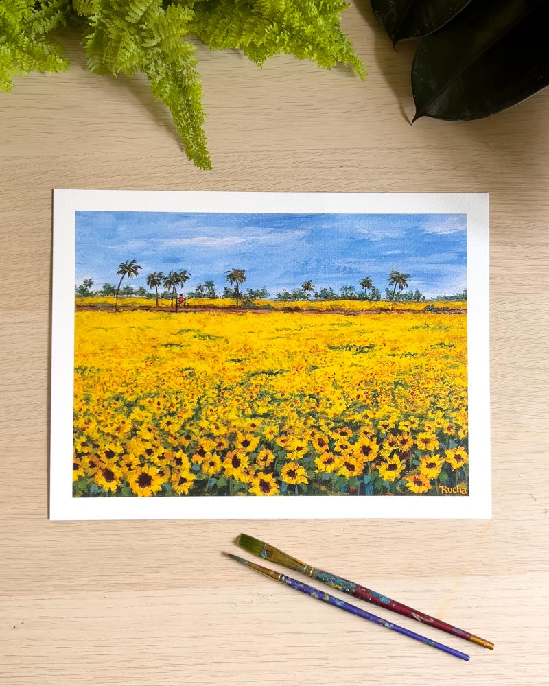 This Art Print is a print of a painting which is inspired from the beautiful Sunflower fields.