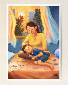 Sleeping on Mom's lap - Art Print