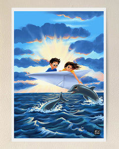 Handshake with dolphins - Art Print