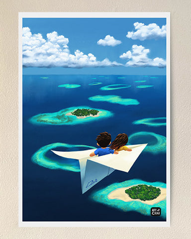 Flying over Maldives - Art Print