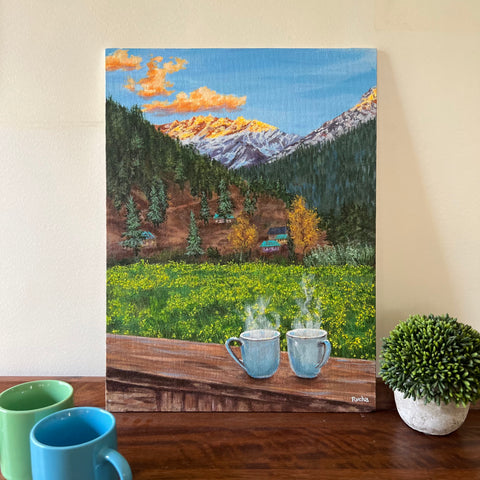 Cuppa by the mountains - Painting