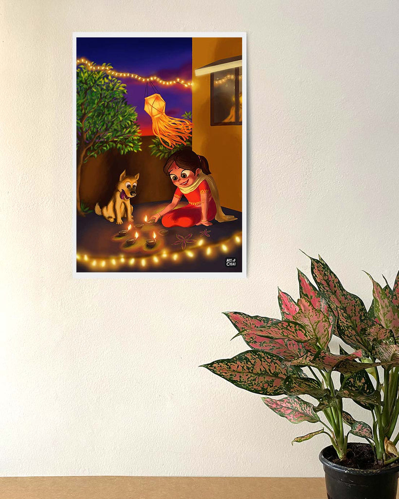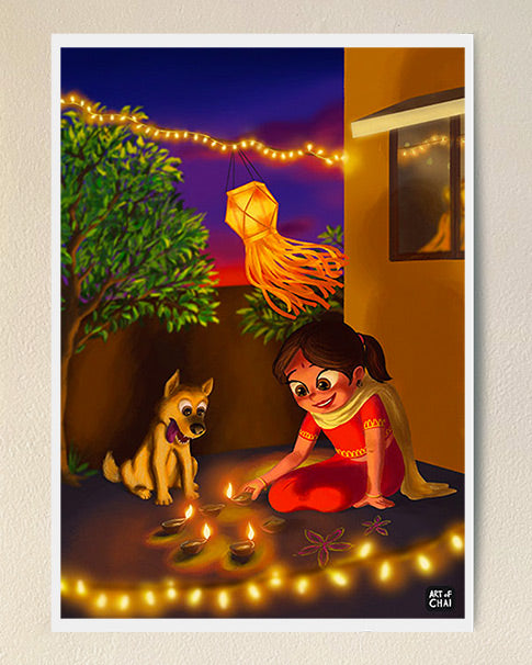 Diwali with Pup - Art Print