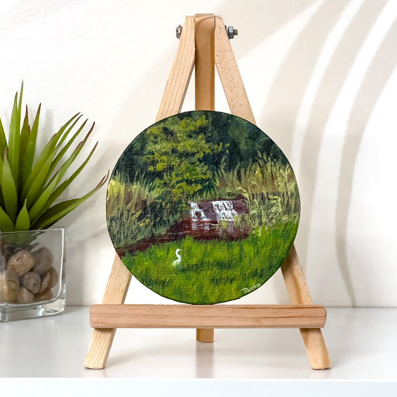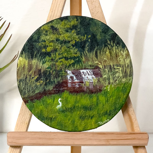 This is an original 4 inches diameter painting. Acrylic on Canvas.